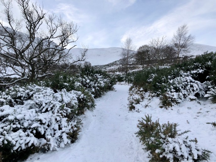 Continue to climb gently, passing the nascent Swanston Arboretum and a stone seat with splendid views across the city. After crossing the Swanston burn, head through a gate on your left and follow the path through the gorse.