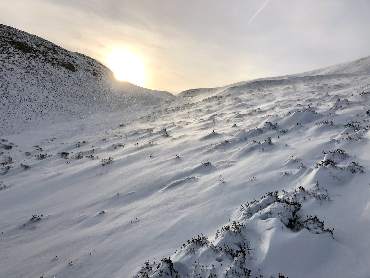 You’ll soon come to a crossroads at an area known as Muilieputchie. This curious name comes from the Scots words moolie, meaning damp or mouldy, and pootch, meaning pouch or pocket. Follow the sign for Allermuir to climb out of this mouldy pocket.