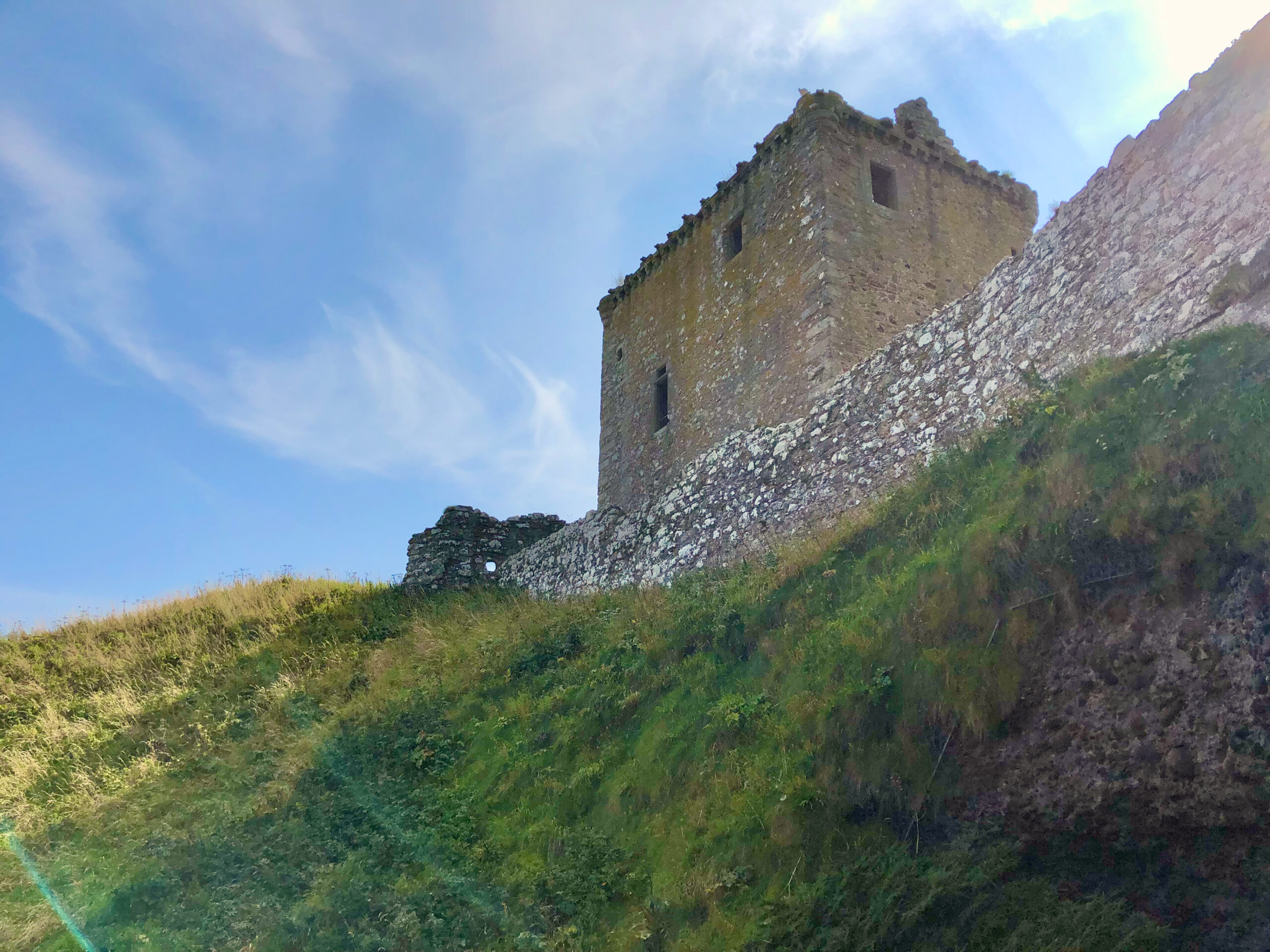 The story of the clifftop stronghold of Dunnottar Castle begins with a church. In the early Fifth Century, St Ninian built a chapel at Dunnottar while working as a missionary among the local Picts. Protected on three sides by steep cliffs leading down to the cold North Sea, Dunnottar became an important defensive location and four hundred years later, the last King of the Picts, Donald II, was killed in battle defending it against viking raiders. Enemies didn’t only come from the sea, however, as in 934 Athelstan, the first King of England, invaded Scotland as far north as Dunnottar.